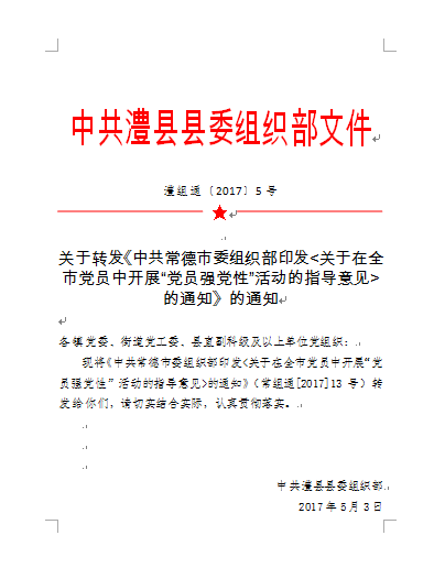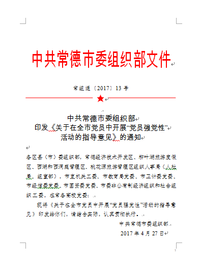 关于转发《中共常德市委组织部印发的通知》的通知