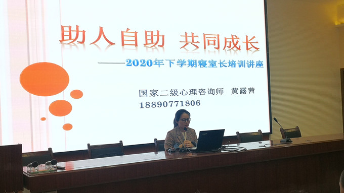 黄露茜老师介绍了心理健康的相关知识,指出高中生常见的心理困惑,对各寝室长(兼心理委员)的工作提出了相应指导意见和要求。培训过程中,全体寝室长表现出了良好的会风和极大的参与热情,培训活动取得了圆满成功。