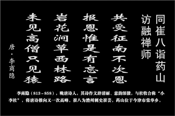 【李商隐(813-858),晚唐诗人,其诗作文辞清丽、意韵深微,与杜牧合称“小李杜”,将唐诗推向又一次高峰。崔八为澧州刺史崔芸,药山位于今津市棠华乡】