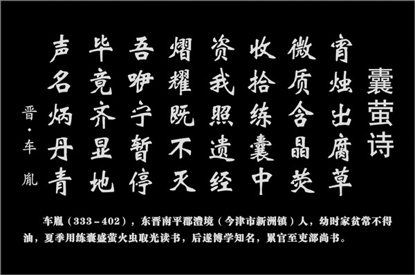 【车胤(333-402),东晋南平郡澧境(今津市新洲镇)人,幼时家贫常不得油,夏季用练囊盛萤火虫取光读书,后遂博学知名,累官至吏部尚书】