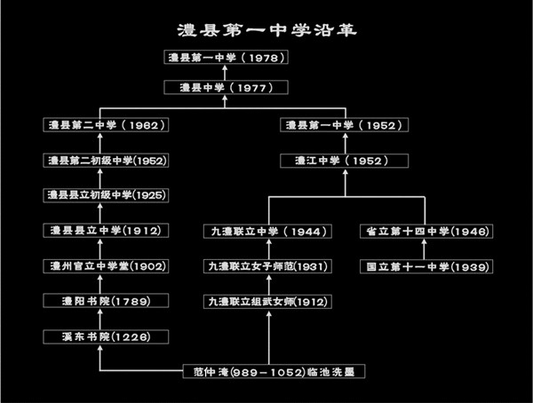 澧县第一中学沿革可分为三个阶段,即溪东书院时期、澧阳书院时期和新学时期。