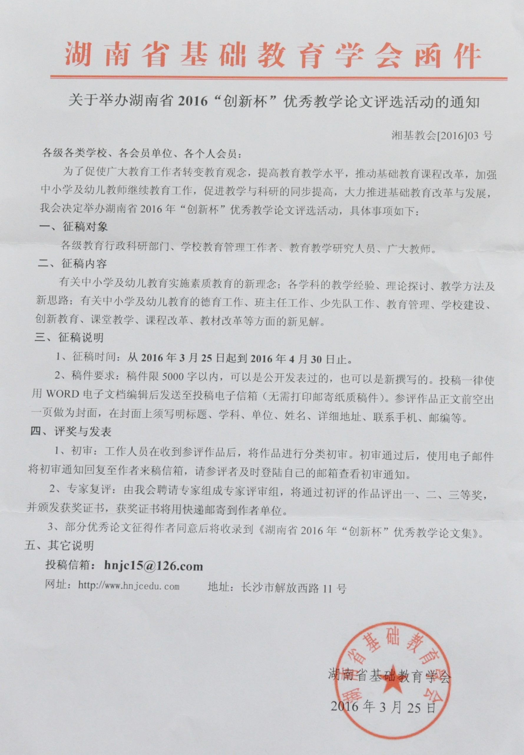 湖南省2016“创新杯”优秀教学论文评选活动的通知