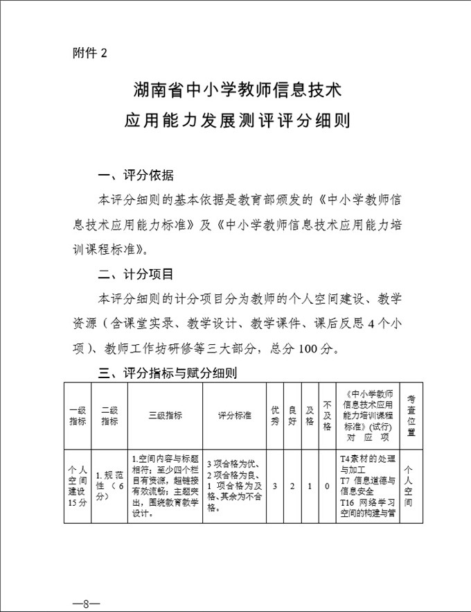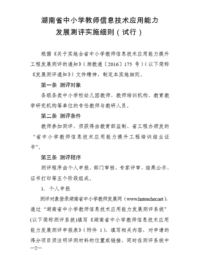 关于印发《湖南省中小学教师信息技术应用能力发展测评实施细则(试行)》的通知