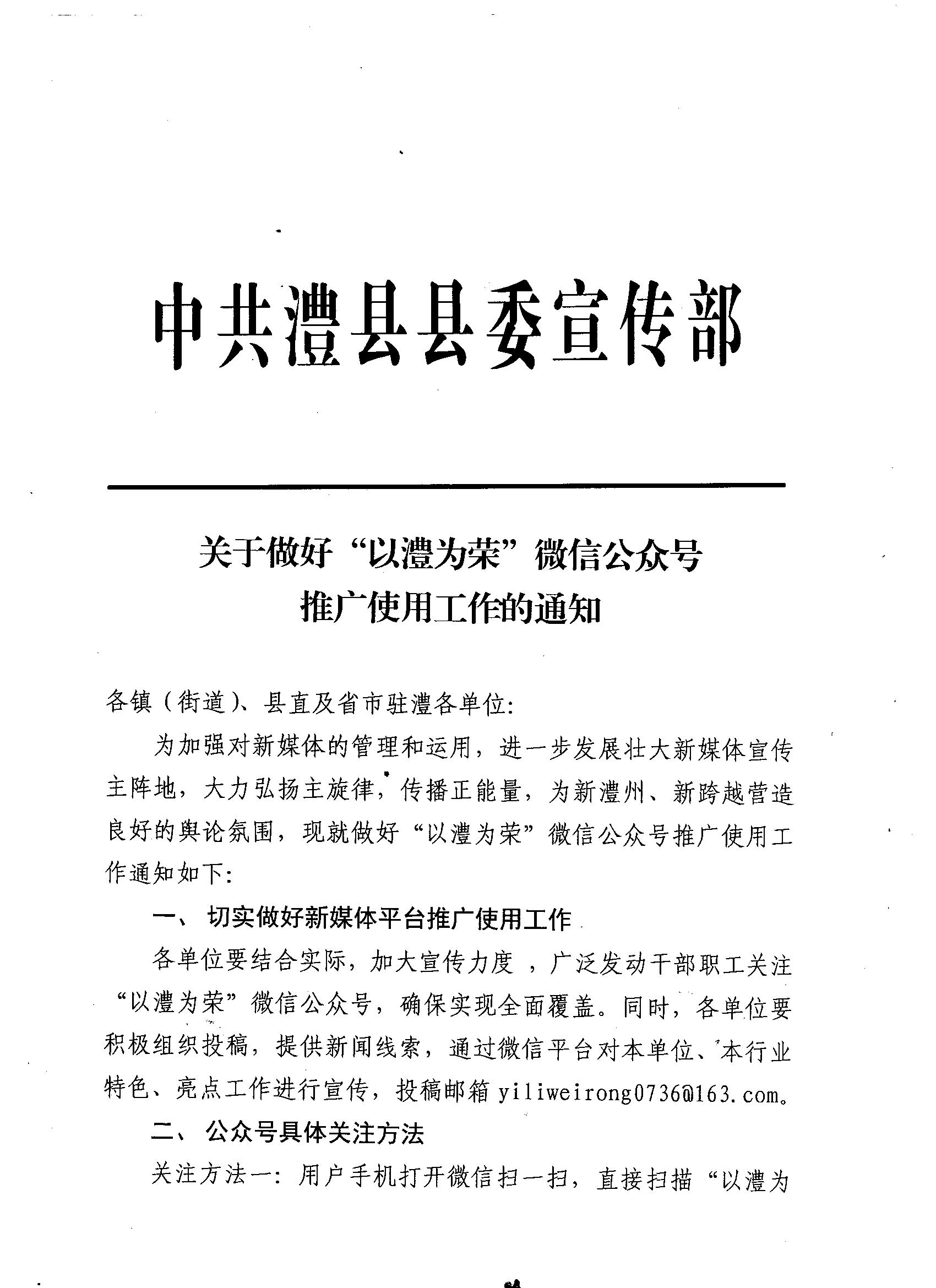 关于做好“以澧为荣”微信公众号推广使用的通知