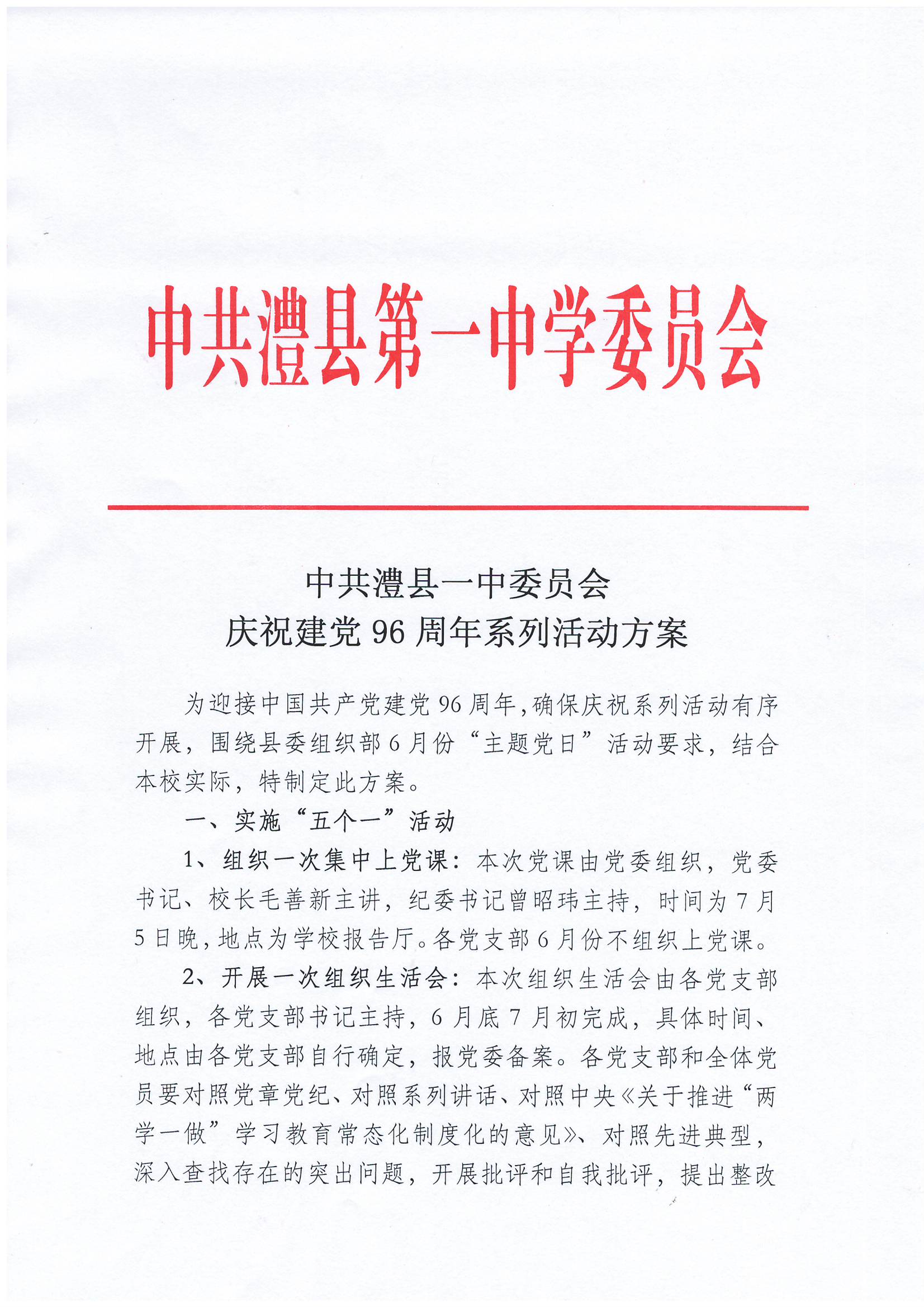 中共澧县一中委员会庆祝建党96周年系列活动方案