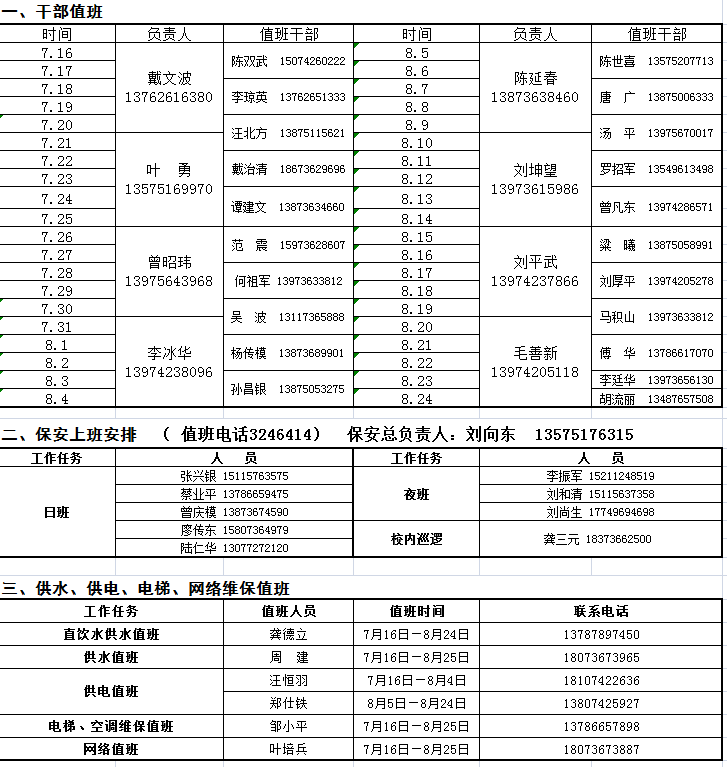 澧县一中2018年暑假干部值班安排表点击查看